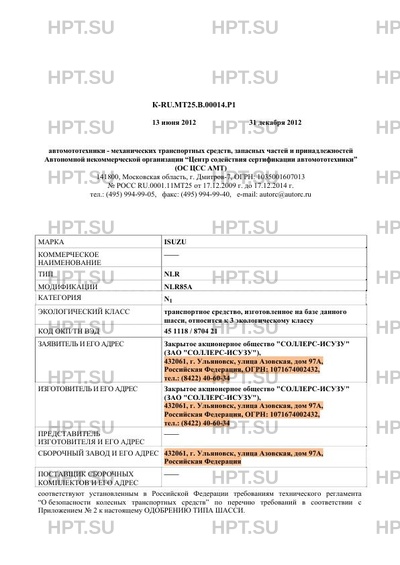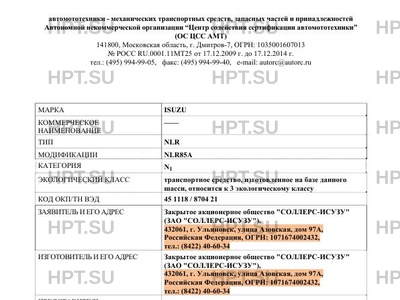 Предприятие-изготовитель Закрытое акционерное общество "СОЛЛЕРС-ИСУЗУ" (ЗАО "СОЛЛЕРС-ИСУЗУ"), 432061, г. Ульяновск, улица Азовская, дом 97А, Российская Федерация, ОГРН: 1071674002432, тел.: (8422) 40-60-34