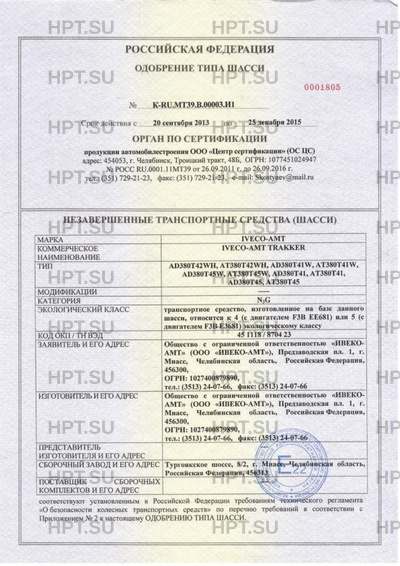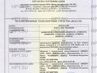 Коммерческое наименование IVECO-АМТ TRAKKER; AD380T42WH, AT380T42WH, AD380T41W, AT380T41W, AD380T45W, AT3…