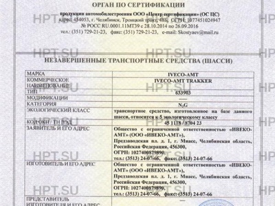 | Предприятие-изготовитель | Общество с ограниченной ответственностью "ИВЕКО-АМТ" (ООО "ИВЕКО-АМТ"), Предзаводская пл. д. 1, г. Миасс, Челябинская область, Российская Федерация, 456300, ОГРН: 1027400879890, тел.: (3513) 24-07-66, факс: (3513) 24-07-66 |