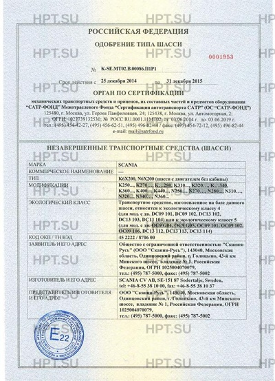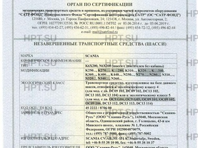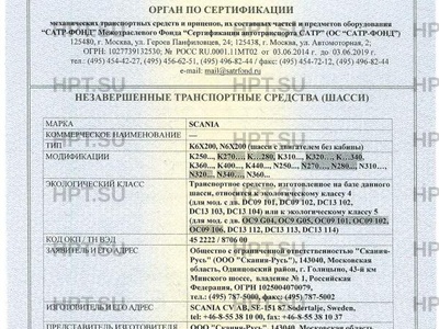 | Предприятие-изготовитель | SCANIA CV AB, SE-151 87 Sodertalje, Sweden, tel: +46-8-55 38 10 00, fax: +46-8-55 38 10 37 |