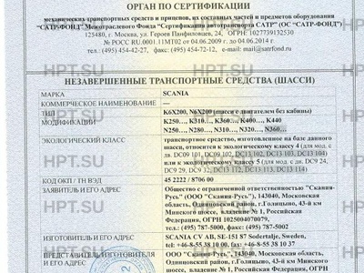 Заявитель Общество с ограниченной ответственностью "Скания-Русь" (ООО "Скания-Русь"), 143040, Московская область, Одинцовский район, г.Голицыно, 43-й км Минского шоссе, владение № 1, Российская Федерация, ОГРН 1025004070079, тел.: (495) 787-5000, факс: (495) 787-5002