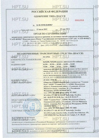 Предприятие-изготовитель SCANIA CV AB, SE-151 87 Sodertalje, Sweden, tel: +46-8-55 38 10 00, fax: +46-8-55 38 10 37