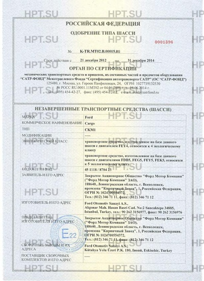 Предприятие-изготовитель | Ford Otomotiv Sanayi A.S., Akpınar Mah. Hasan Basri Cad. No:2 Sancaktepe 34885, Istanbul, Turkey, тел.: 90 262 3156977, факс: 90 262 3156976 |