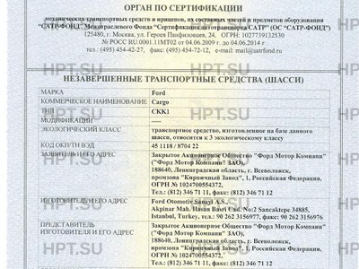 | Заявитель | Закрытое Акционерное Общество "Форд Мотор Компани" ("Форд Мотор Компани" ЗАО), 188640, Ленинградская область г. Всеволожск, промзона "Кирпичный Завод,1, Российская Федерация, ОГРН № 1024700554372, Тел.: (812) 346 71 11, факс: (812) 346 71 12 |