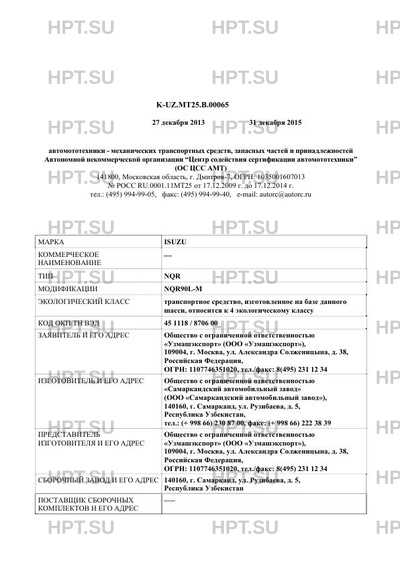 | Предприятие-изготовитель | Общество с ограниченной ответственностью «Самаркандский автомобильный завод» (ООО «Самаркандский автомобильный завод»), 140160, г. Самарканд, ул. Рузибаева, д. 5, Республика Узбекистан |