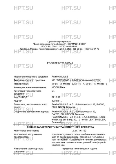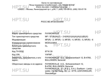 | Марка ТС | FAYMONVILLE |