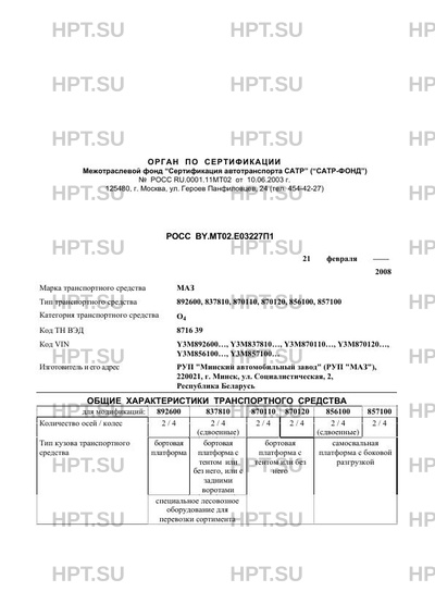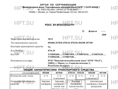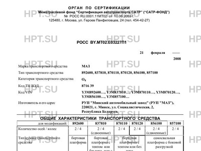 | Тип ТС | 892600, 837810, 870110, 870120, 856100, 857100 |