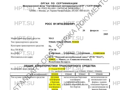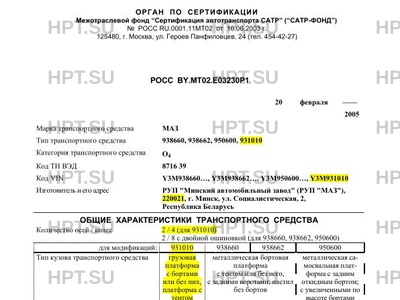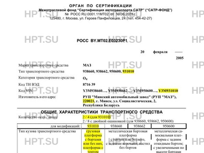 | Тип ТС | 938660, 938662, 950600, 931010 |