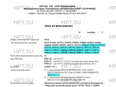 | Тип ТС | МАЗ 533632, 533731, 534019, 534035, 534069, 544019, 544035,544069, 555019, 555035, 555131, 555132, 5336A2, 5336A3, 5337A2, 5337A3, 5432A2, 5432A3, 5433A2, 5433A3, 5551A2, 5551A3, 5340A2, 5340A3, 5340A4, 5340A5, 5340A8, 5440A2, 5440A3, 5440A4, 5440A5, 5440A8, 5550A2, 5550A3, 5550A4, 5550A5 |