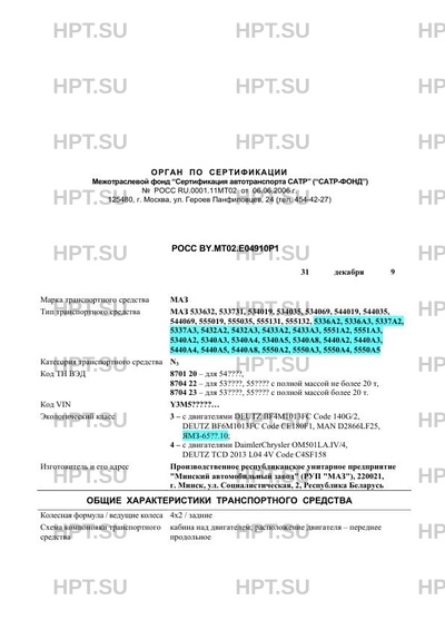 | Код ТН ВЭД | 8701 20 – для 54????, 8704 22 – для 53????, 55???? с полной массой не более 20 т, 8704 23 – для 53????, 55???? с полной массой более 20 т. |