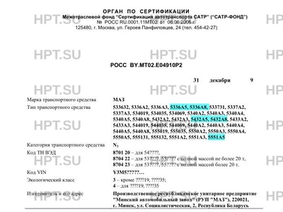 | Тип ТС | 533632, 5336A2, 5336A3, 5336A5, 5336A8, 533731, 5337A2, 5337A3, 534019, 534035, 534069, 5340A2, 5340A3, 5340A4, 5340A5, 5340A8, 5432A2, 5432A3, 5432A5, 5432A8, 5433A2, 5433A3, 544019, 544035, 544069, 5440A2, 5440A3, 5440A4, 5440A5, 5440A8, 555019, 555035, 5550A2, 5550A3, 5550A4, 5550A5, 555131, 555132, 5551A2, 5551A3, 5551A5 |