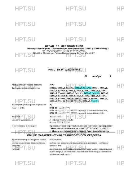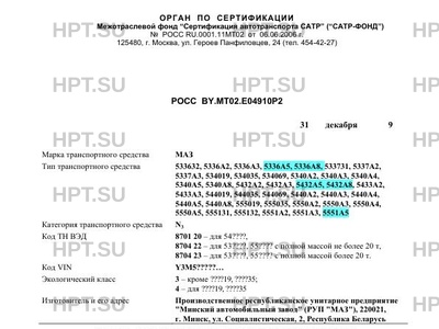 | Код ТН ВЭД | 8701 20 – для 54????, 8704 22 – для 53????, 55???? с полной массой не более 20 т, 8704 23 – для 53????, 55???? с полной массой более 20 т. |