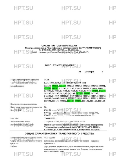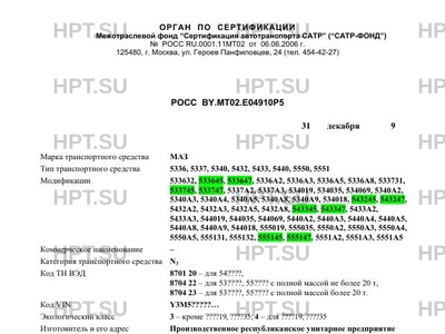 | Код ТН ВЭД | 8701 20 – для 54????, 8704 22 – для 53????, 55???? с полной массой не более 20 т, 8704 23 – для 53????, 55???? с полной массой более 20 т. |