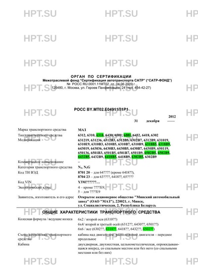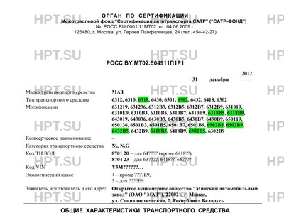 | Тип ТС | 6312, 6310, 6318, 6430, 6501, 6502, 6432, 6418, 6302 |