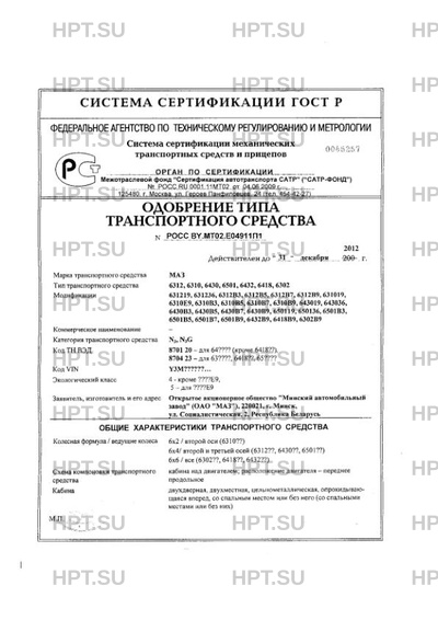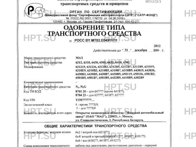 | Предприятие-изготовитель | ОАО "Минский автомобильный завод" (ОАО "МАЗ"), 220021, г.Минск, ул.Социалистическая, 2, Республика Беларусь |