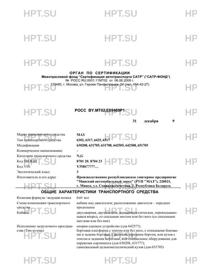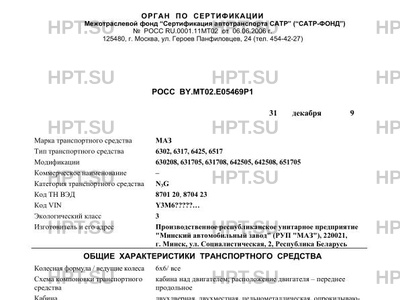 | Предприятие-изготовитель | Производственное республиканское унитарное предприятие "Минский автомобильный завод" (РУП "МАЗ"), 220021, г. Минск, ул. Социалистическая, 2, Республика Беларусь |