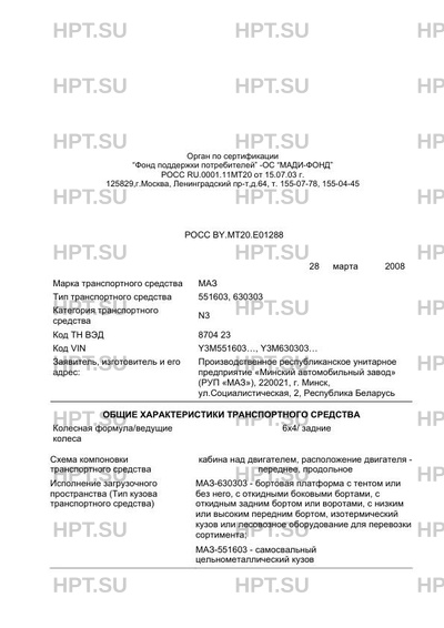 Исполнение загрузочного пространства МАЗ-630303 - бортовая платформа с тентом или без него, с откидными боковыми бортами, с откидным задним бортом или воротами, с низким или высоким передним бортом, изотермический кузов или лесовозное оборудование для перевозки сортимента; МАЗ-551603 - самосвальный цельнометаллический кузов 2