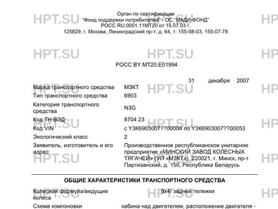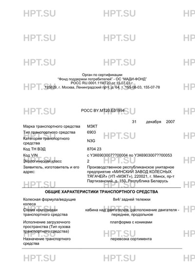 | Код VIN | с Y3К6903007??00004 по Y3К6903007??00053 |