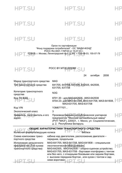 Исполнение загрузочного пространства МАЗ-641705, МАЗ-641708, МАЗ-641808 - специальное лесотехническое оборудование; МАЗ-642505, МАЗ-642508 - опорно-сцепное устройство; МАЗ-631705, МАЗ-631708 - бортовая платформа с тентом или без него, с откидными боковыми или задним бортами, с высоким передним бортом , или кузов с тентом и задними воротами 2