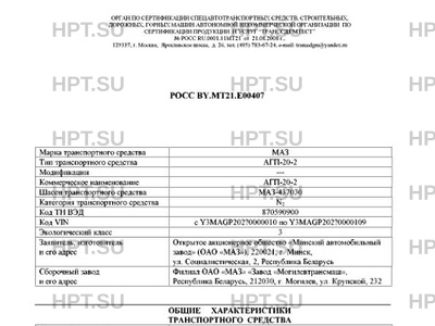 Предприятие-изготовитель Филиал ОАО «МАЗ» «Завод «Могилевтрансмаш», Республика Беларусь, 212030, г. Могилев, ул. Крупской, 232, Республика Беларусь