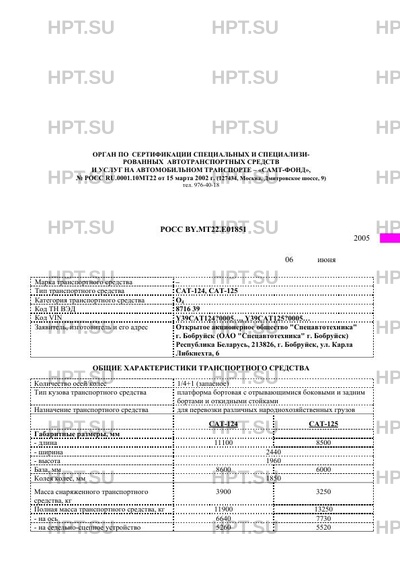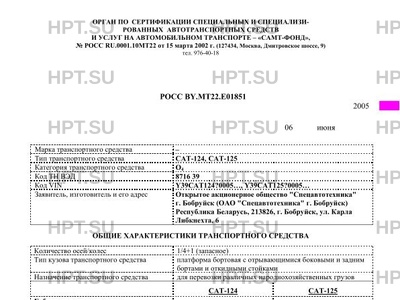 Коммерческое наименование Полуприцепы автомобильные САТ-124, САТ-125