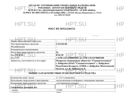 | Оборудование ТС | гидравлический механизм подъема трапов 3 При проезде транспортного средства по автомобильным дорогам общего пользования, а также по улицам городов и населенных пунктов должны быть выполнены требования "Инструкции по перевозке крупногабаритных и тяжеловесных грузов автомобильным транспортом по дорогам Российской Федерации". |