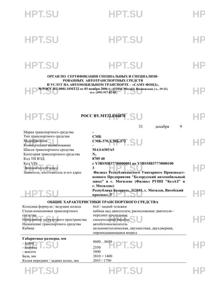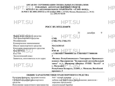 | Коммерческое наименование | СМБ-372, СМБ-370 на шасси МАЗ-6303А5 |