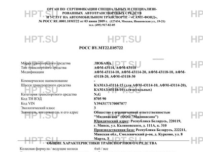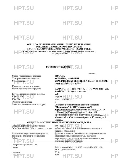 | Тип ТС | АФМ-43114, АФМ-43118 |