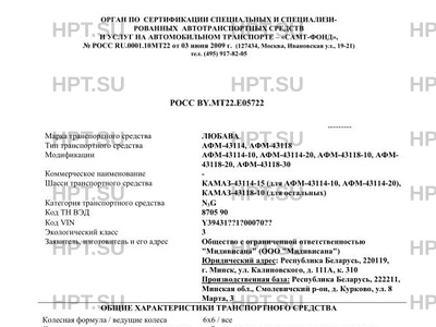 | Базовое ТС / Шасси | КАМАЗ-43114-15 (для АФМ-43114-10, АФМ-43114-20), КАМАЗ-43118-10 (для остальных)… |