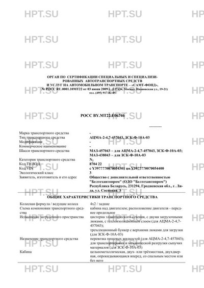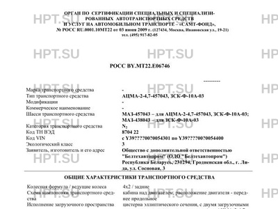 | Коммерческое наименование | АЦМА-2-4-7-457043, ЗСК-Ф-10А-03 на шасси МАЗ-457030, МАЗ-438030 |