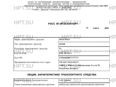 | Оборудование ТС | автономный отопитель "Webasto" *При проезде автопоезда в составе седельного тягача МАЗ-MAN-642268 и полуприцепа по автомобильным дорогам общего пользования, а также по улицам городов и населенных пунктов должны быть выполнены требования "Инструкции по перевозке крупногабаритных и тяжеловесных грузов автомобильным транспортом по дорогам Российской Федерации". |