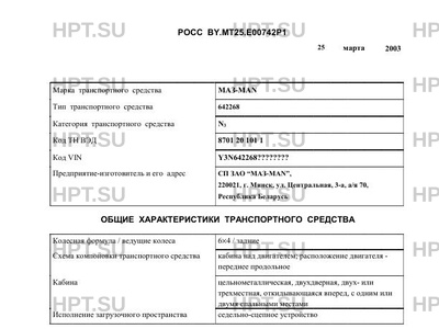 | Марка ТС | МАЗ-MAN |