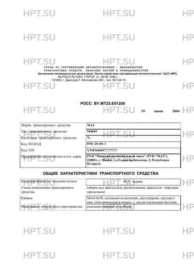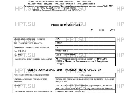 | Предприятие-изготовитель | РУП "Минский автомобильный завод" (РУП "МАЗ"), 220021, г. Минск, ул. Социалистическая, 2, Республика Беларусь |