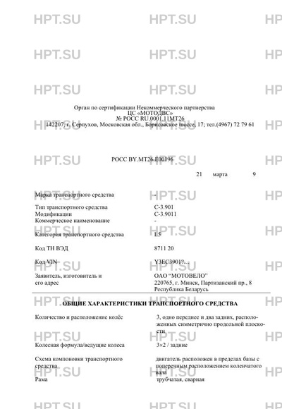 | Код VIN | Y3EС3901?… |