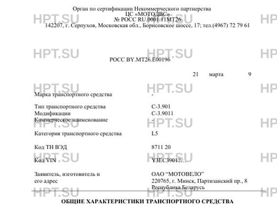 | Орган по сертификации | ЦС 'МОТОДВС' |