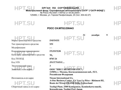 | Оборудование ТС | система стабилизации курсовой устойчивости, обогрев наружных зеркал заднего вида, аудиосистема, подушки безопасности, обогрев сидений, противоугонное устройство, система климат-контроля (хладагент R134a) INFINITI S51 |