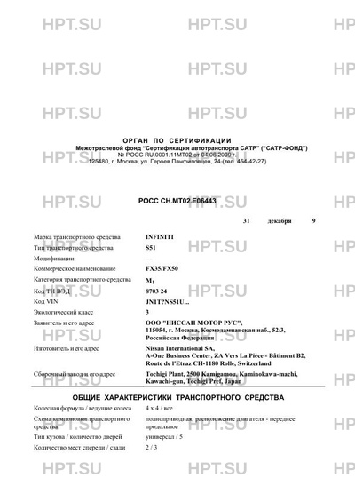 | Заявитель | ООО "НИССАН МОТОР РУС", 115054, г. Москва, Космодамианская наб., 52/3, Российская Федерация |