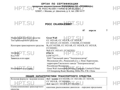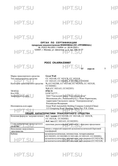 | Категория ТС | N1 (СС1022SR, CC 1021AR, CC 1021CR, CC 1021LR, СC1026SE) N1G (CC 1021AY, СС1022… |