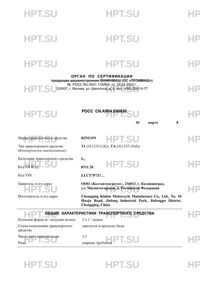 Тип ТС (Коммерческое наименование) T1 (JL125T-C(E)), TА (JL125T-10(E))