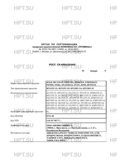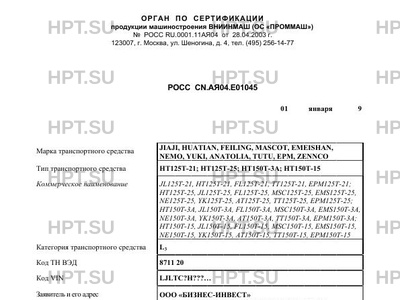 | Тип ТС | HТ125T-21; HТ125T-25; HТ150T-3A; HТ150T-15 (JL125T-21, HТ125T-21, FL125T-21, TT125T-21, EPM125T-21; HТ125T-25, JL125T-25, FL125T-25, MSC125T-25, EMS125T-25, NE125T-25, YK125T-25, AT125T-25, TT125T-25, EPM125T-25; HТ150T-3A, JL150T-3A, FL150T-3A, MSC150T-3A, EMS150T-3A, NE150T-3A, YK150T-3A, AT150T-3A, TT150T-3A, EPM150T-3A; HТ150T-15, JL150T-15, FL150T-15, MSC150T-15, EMS150T-15, NE150T-15, YK150T-15, AT150T-15, TT150T-15, EPM150T-15) |