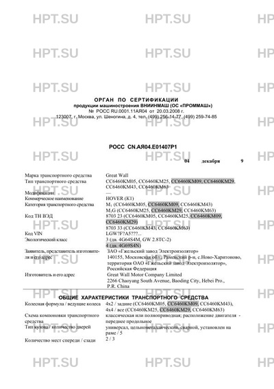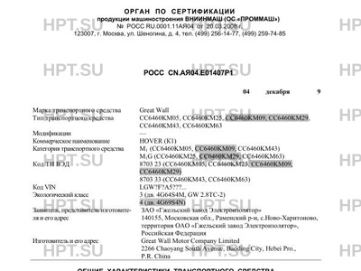 | Категория ТС | M1 (CC6460KM05, CC6460KM09, CC6460KM43) M1G (CC6460KM25, CC6460KM29, CC6460KM63) |