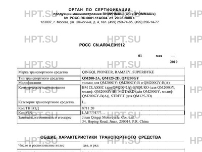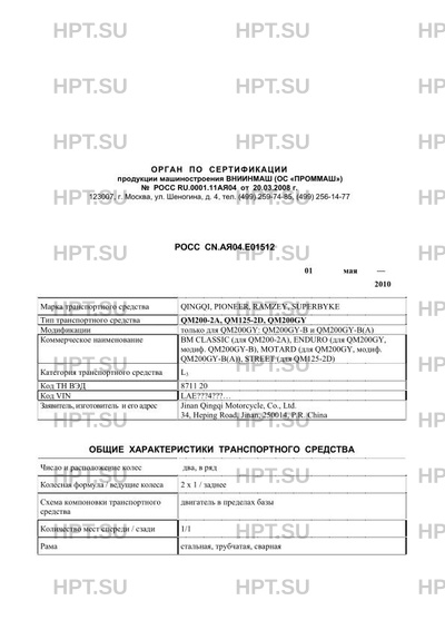 | Марка ТС | QINGQI, PIONEЕR, RAMZEY, SUPERBYKE |