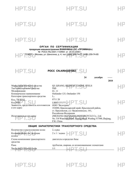 | Марка ТС | QJ, QJIANG, KEEWAY, LEONE, STELS |
