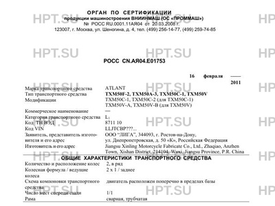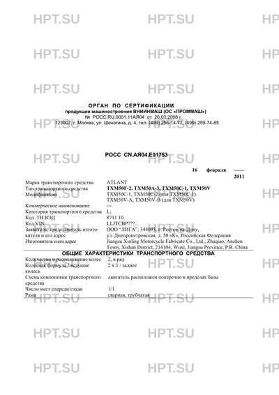 Тип ТС TXM50F-2, TXM50A-3, TXM50C-1, TXM50V