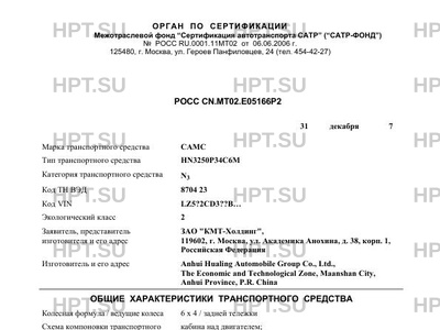 | Оборудование ТС | кондиционер (хладагент R134a) При проезде транспортных средств CAMC HN3250P34C6M по автомобильным дорогам общего пользования, а также по улицам городов и населенных пунктов должны быть выполнены требования "Инструкции по перевозке крупногабаритных и тяжеловесных грузов автомобильным транспортом по дорогам Российской Федерации". CAMC HN3250P34C6M |