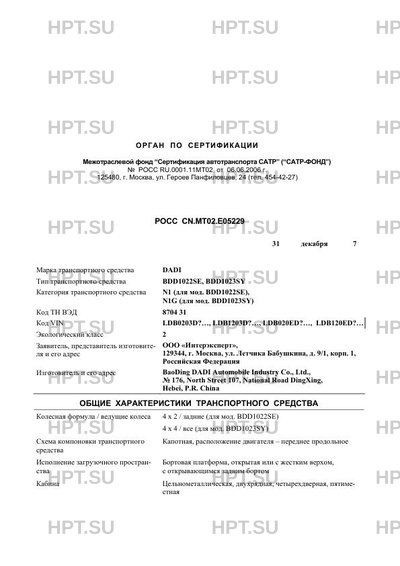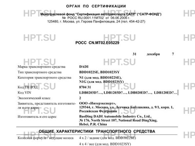| Категория ТС | N1 (для мод. BDD1022SE), N1G (для мод. BDD1023SY) |