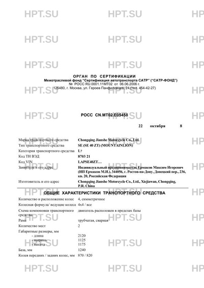 | Марка ТС | Chongqing Jianshe Motorcycle Co., Ltd. |
