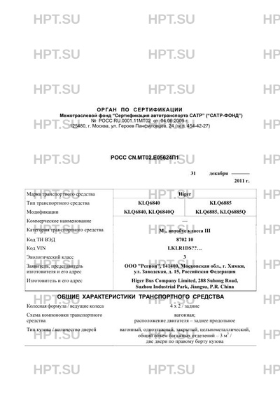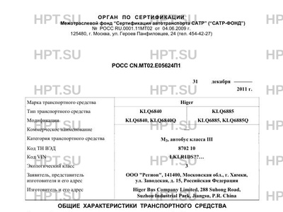 | Оборудование ТС | кондиционер (хладагент R-134A), аудио-видеосистема, видеосистема заднего обзора, электронные часы, система климат-контроля салона (хладагент R-134A) Higer KLQ6840, KLQ6885 |