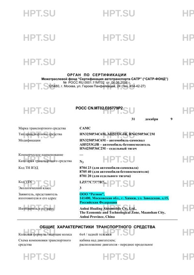 | Коммерческое наименование | HN3250P34C6M, AH5253GJB, HN4250P36C2M (HN3250P34C6M - автомобиль-самосвал, AH5… |
