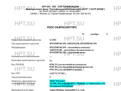 | Тип ТС | HN3250P34C6M, AH5253GJB, HN4250P36C2M |